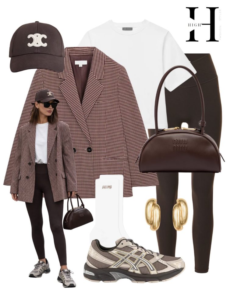 The brown houndstooth blazer arrives as a love letter to tradition, reimagined through a contemporary lens. Its oversized cut and double-breasted stance speak to power dressing heritage, yet here it meets its unlikely partner: chocolate brown leggings and a white…